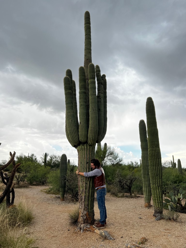 Agave stalks stretched tall from their pointed leaves, flowering delicately at the ends like fingers to the sun. It was a conjoined effort to grab hold of their heat lamp and yank it closer, so that those without arms could survive. And there were more than I ever imagined. Skinny cacti feverishly sprouted from the Earth as if God took it from a greater tree we knew nothing about. Yucca plants looked like lava lamps. Barrel cacti were green pumpkins covered in spines. It was all very surreal, but nothing could’ve prepared us for the Saguaros that lurked beyond.