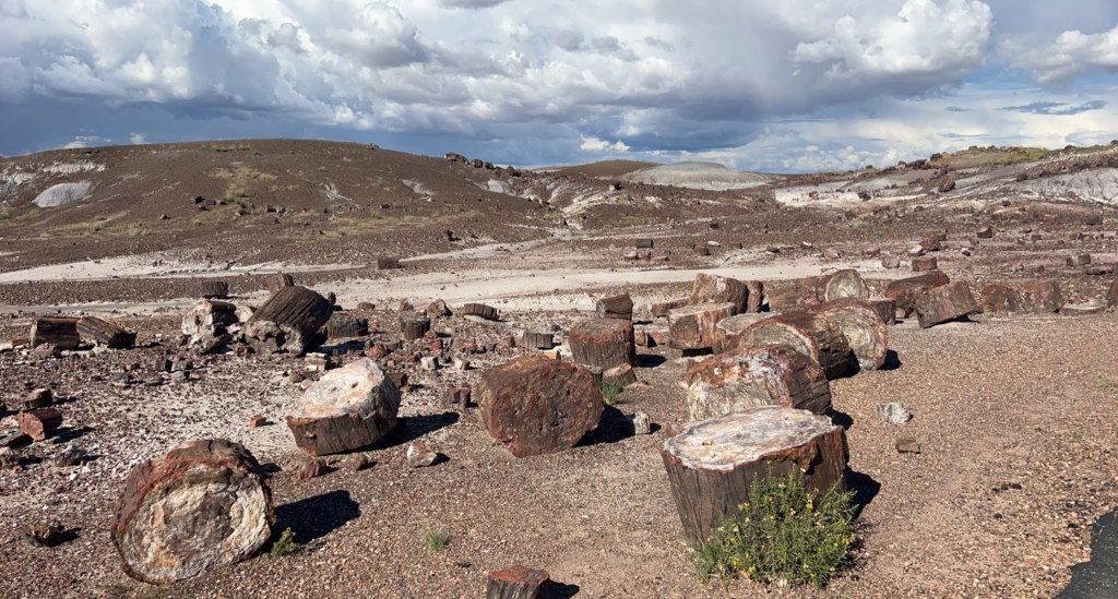 For the history-buffs out there, the middle-aged men in New Balance or Jared Polis, ‘Petrified Forest’ was, in fact, fossilized wood leftover from a Triassic-era rainforest that occurred over 200 million years ago on the supercontinent of Pangea. Volcanic ash and other sediment preserved it and eventually replaced the organic matter with quartz crystals. The entire park was a desolate dumping ground for these wood crystals, much too heavy to lift as a souvenir.