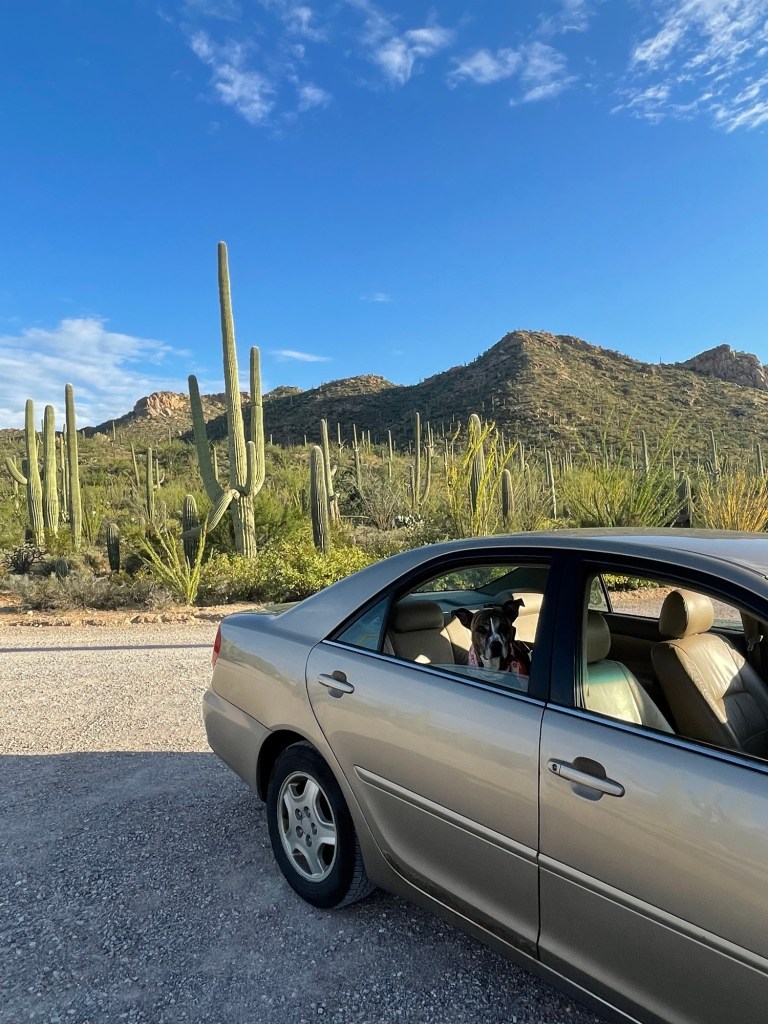 We snaked out of town along the back roads. With every window down, warm desert air feathered across our skin. My left arm hung outside of it and I watched the hair there peel back. Great silhouettes of the Saguaros painted the orange sky, like taffy laid out in the sun. It almost felt like we were too close to them. Their posture demanded reverence despite how cockeyed some of them were. I imagined they carried the souls of the dead, like the gulls held sailors lost at sea. Even though their strong gaze felt ominous at times, they never felt like they were judging us.